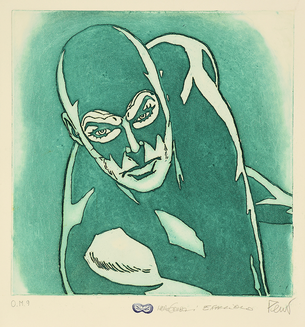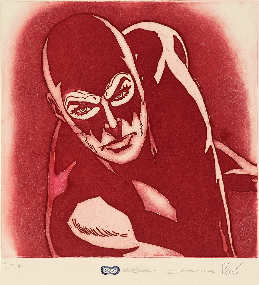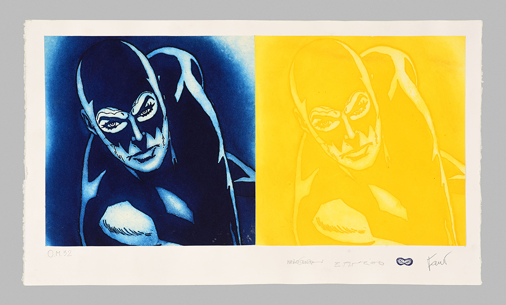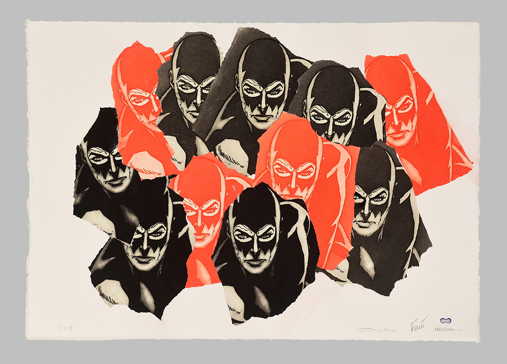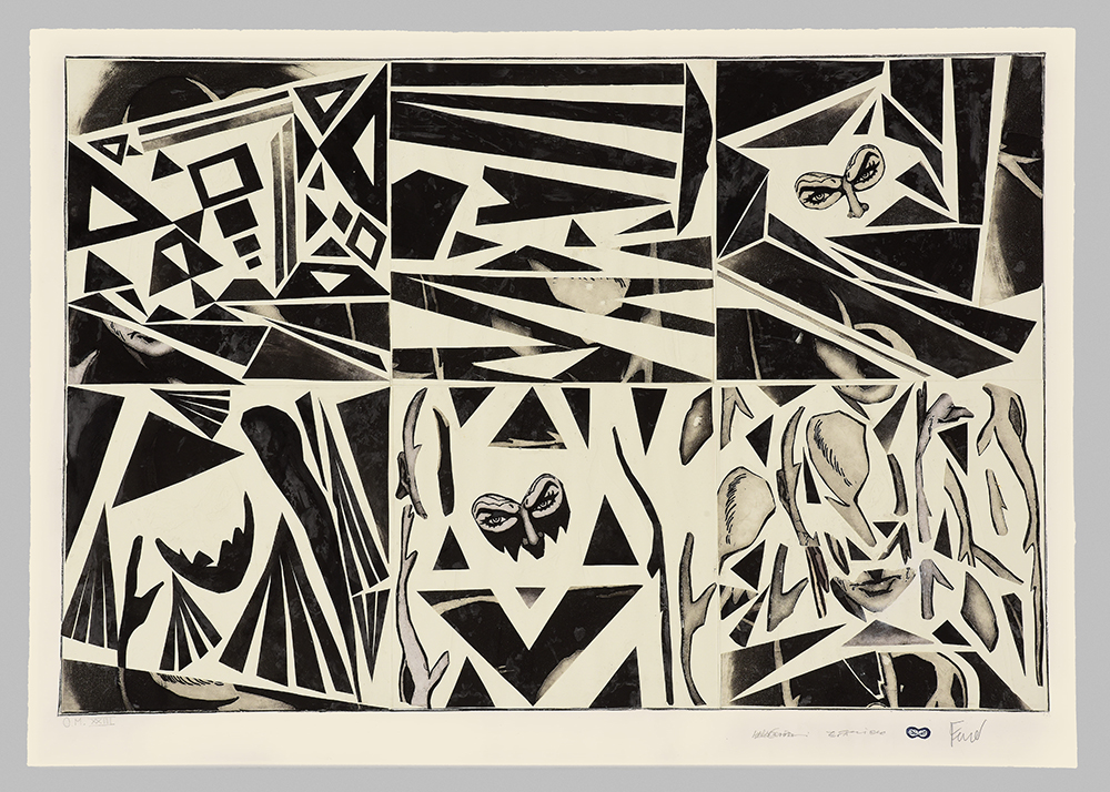 Etching and aquatint on collage of original comics, silk-screen printing, tempera interventions.