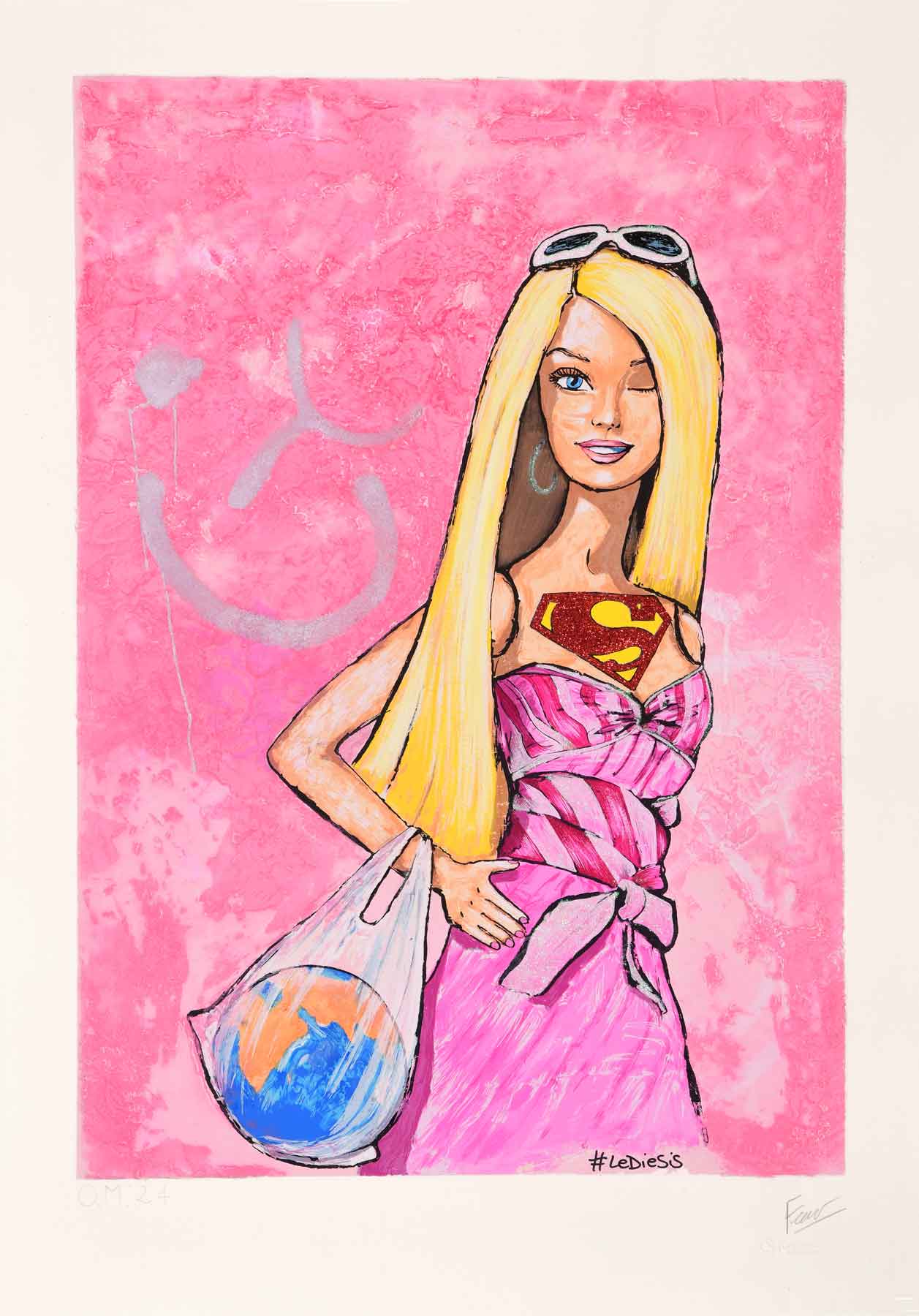 tecnica: Serigrafia, rilievografia su carta Hahnemühle 350 gr., fondo e interventi a mano con glitter, colori a tempera e vernice acrilica.